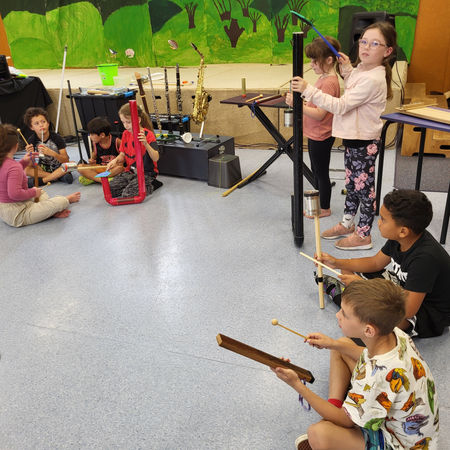 We welcomed entertainer and musician to our school who taught us to play instruments together as a school.
